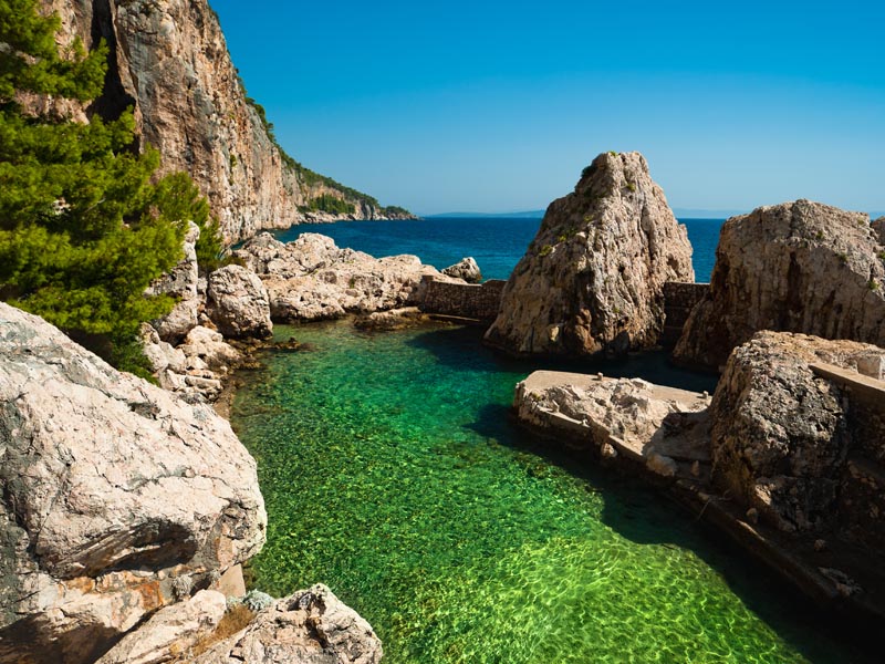 Among the largest and most famous Croatian islands, Hvar is also the sunniest spot on the Adriatic Sea with almost 2,800 hours of sunshine per year. Hvar Town is the busiest destination on the island, its harbor attracting the world elites, dotting its bay with luxurious mega yachts each summer. The town’s long history seems to protrude from every nook, the 13th century main square of St. Stephen with its namesake cathedral, the Fortica citadel with beautiful views of the town and bay, one of the oldest theatres in Europe to name just a few. Lavander oil is the perfect travel souvenir and gift to take home from Hvar, as the island has a long tradition in farming this beautiful, fragrant herb.
