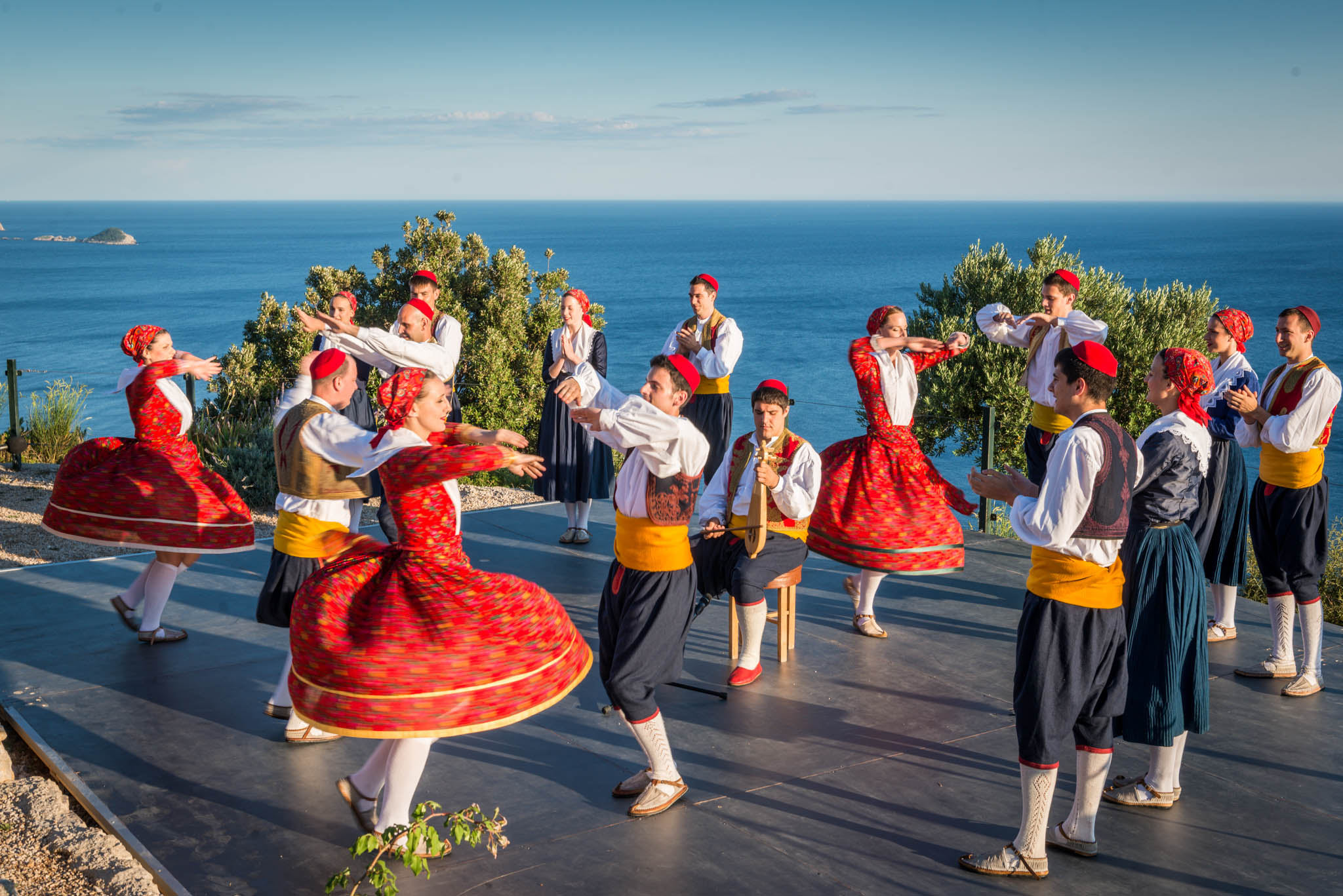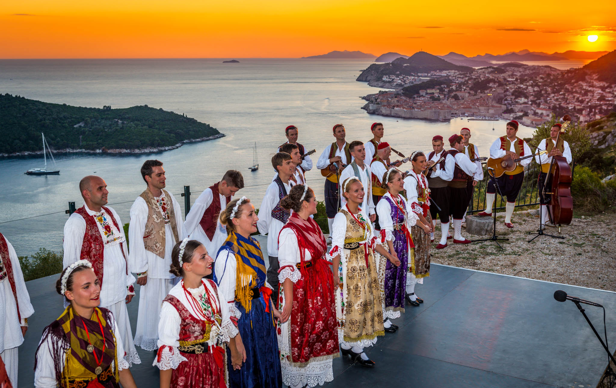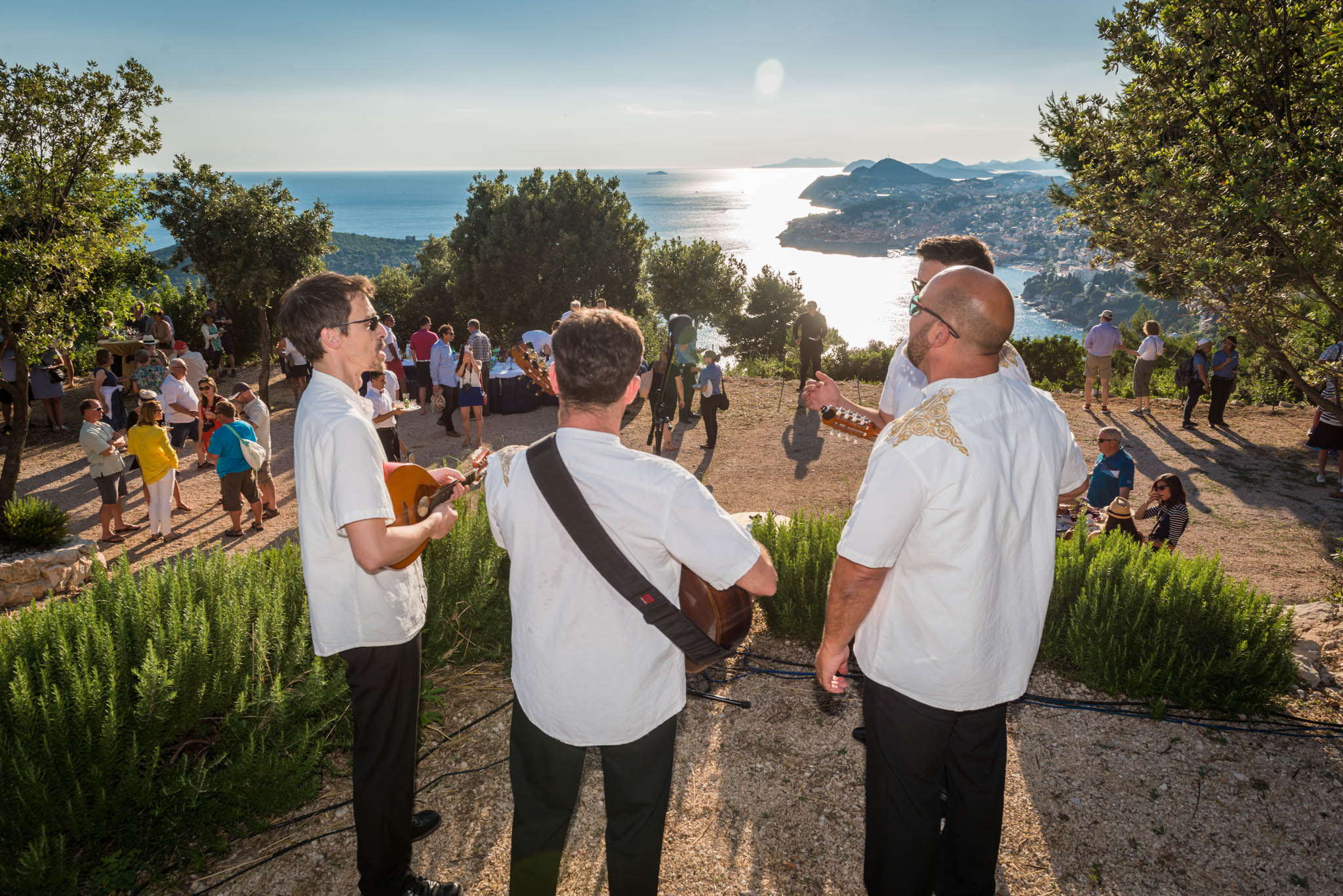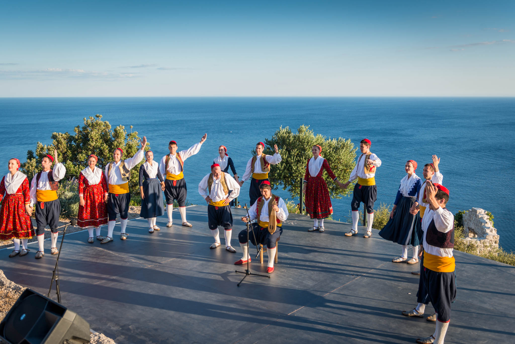 Once all guests have had time to refresh with food and drinks, the cultural program started in the parks’ outside amphitheater, offering same unobstructed views of the turquoise Adriatic. The program included a local klapa, an a capella group, performance and Dubrovnik region’s famous Lindjo dances. Klapa singing has long roots and tradition in this part of Croatia, and is a form of a capella, vocal, singing. The tradition is very much alive today, and klapa singing can be witnessed at festivals, can be heard on the radio and even on the streets of towns along the Croatian coastline. There is no better way to learn about a local culture than through traditional song and dance, so after klapa performance guests also enjoyed the traditional Lindjo troupe performing their vibrant dances in colorful, traditional folklore costumes.