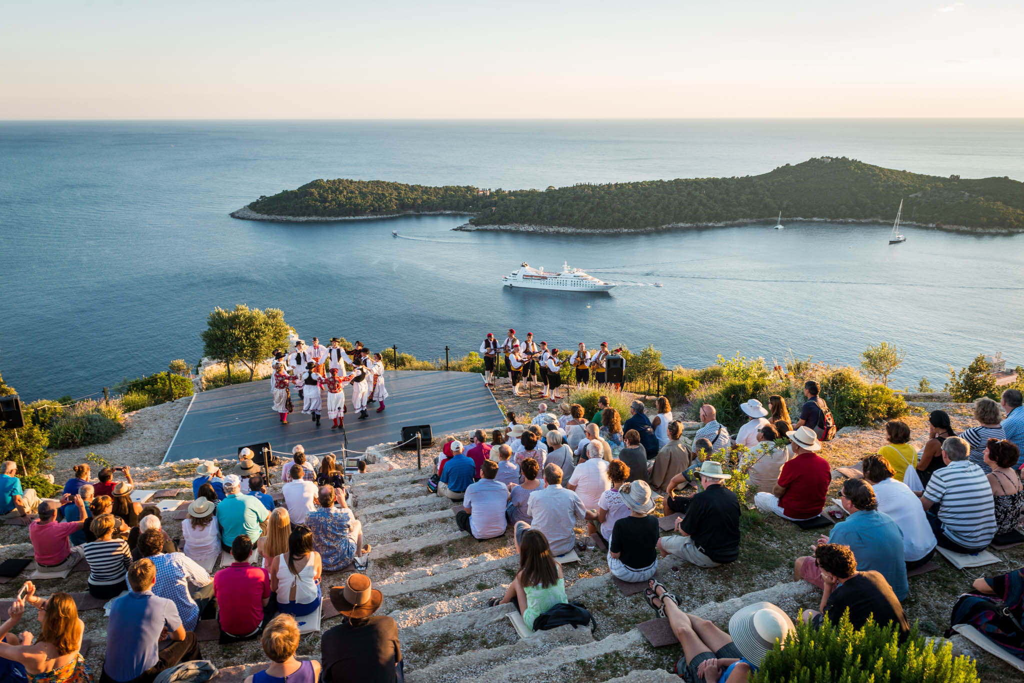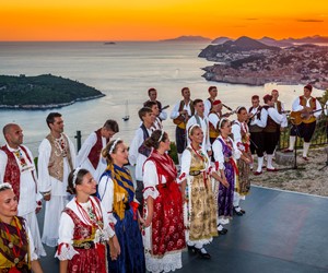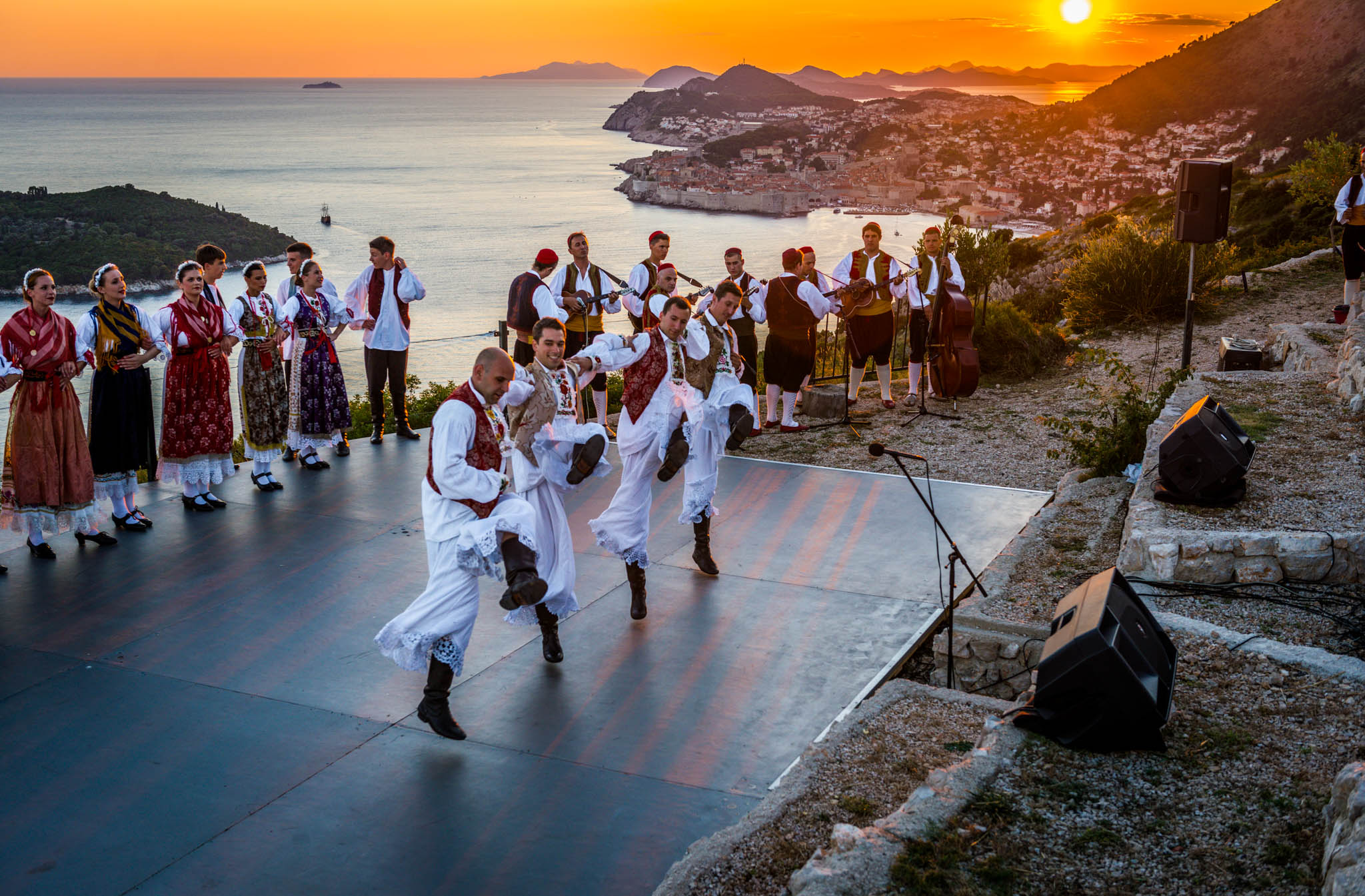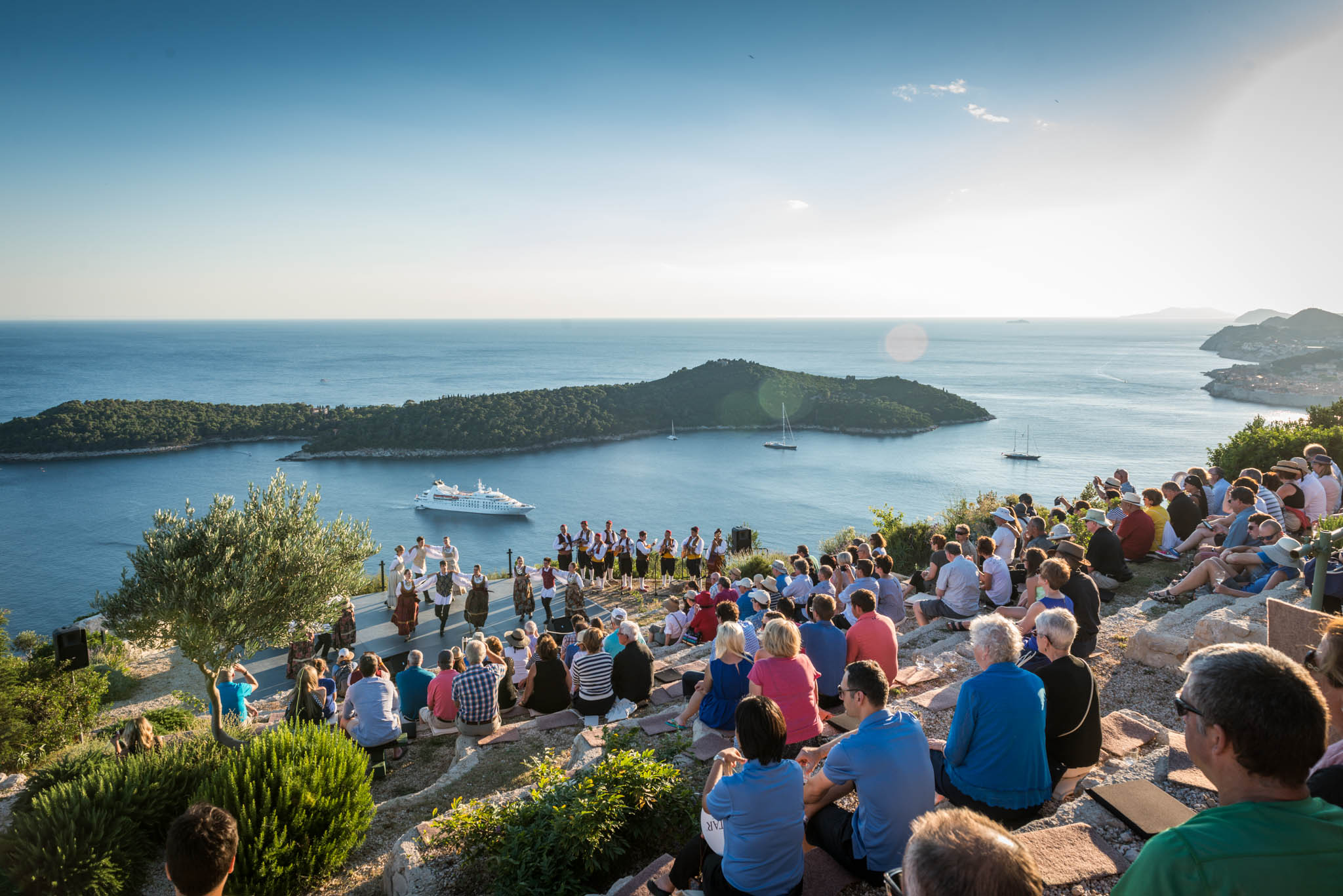 Once all guests have had time to refresh with food and drinks, the cultural program started in the parks’ outside amphitheater, offering same unobstructed views of the turquoise Adriatic. The program included a local klapa, an a capella group, performance and Dubrovnik region’s famous Lindjo dances. Klapa singing has long roots and tradition in this part of Croatia, and is a form of a capella, vocal, singing. The tradition is very much alive today, and klapa singing can be witnessed at festivals, can be heard on the radio and even on the streets of towns along the Croatian coastline. There is no better way to learn about a local culture than through traditional song and dance, so after klapa performance guests also enjoyed the traditional Lindjo troupe performing their vibrant dances in colorful, traditional folklore costumes.