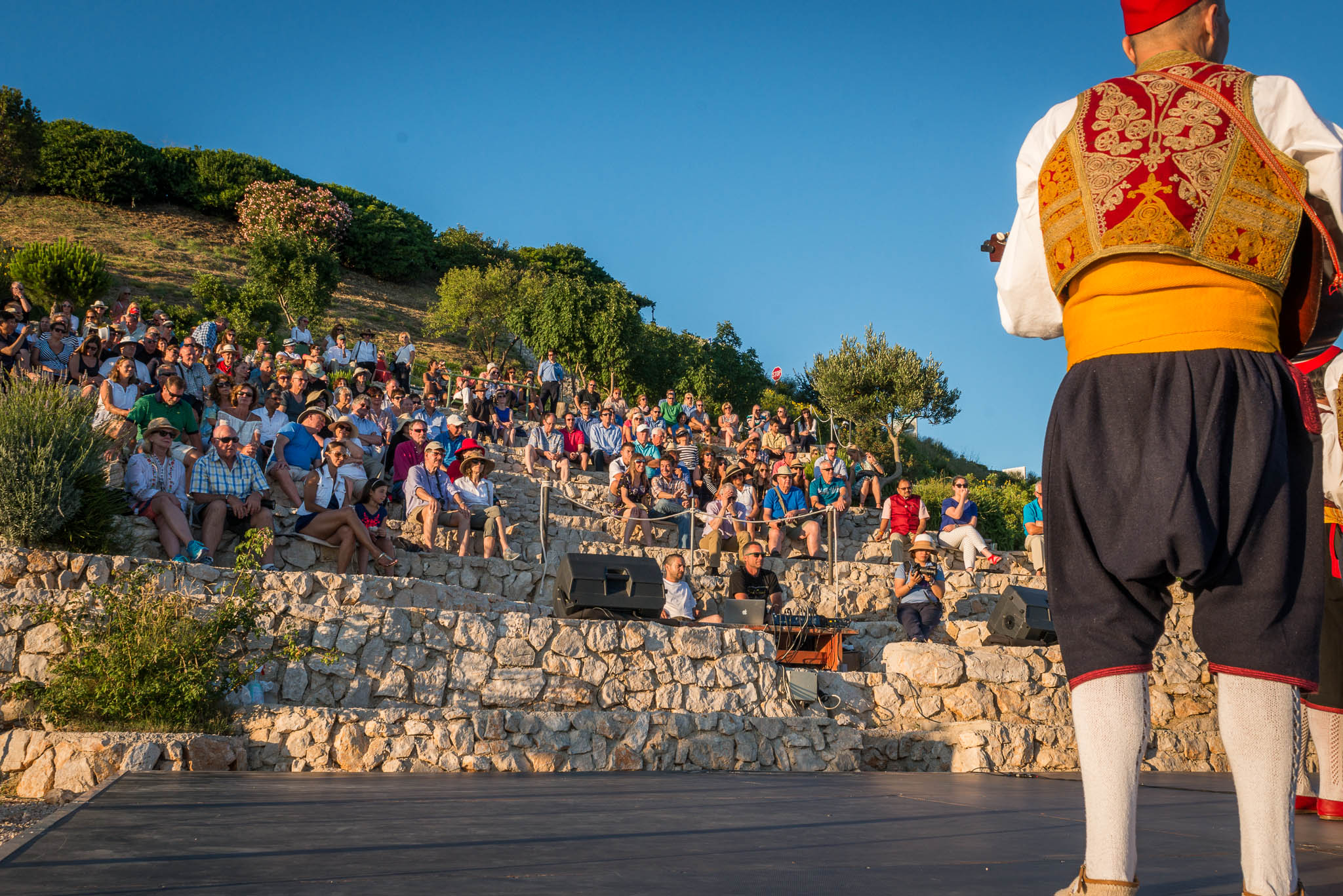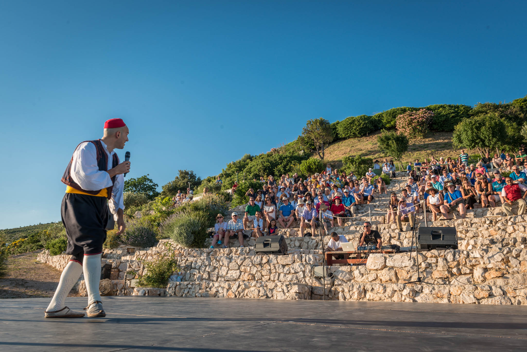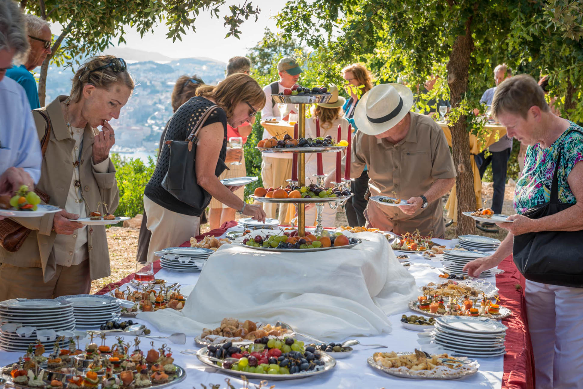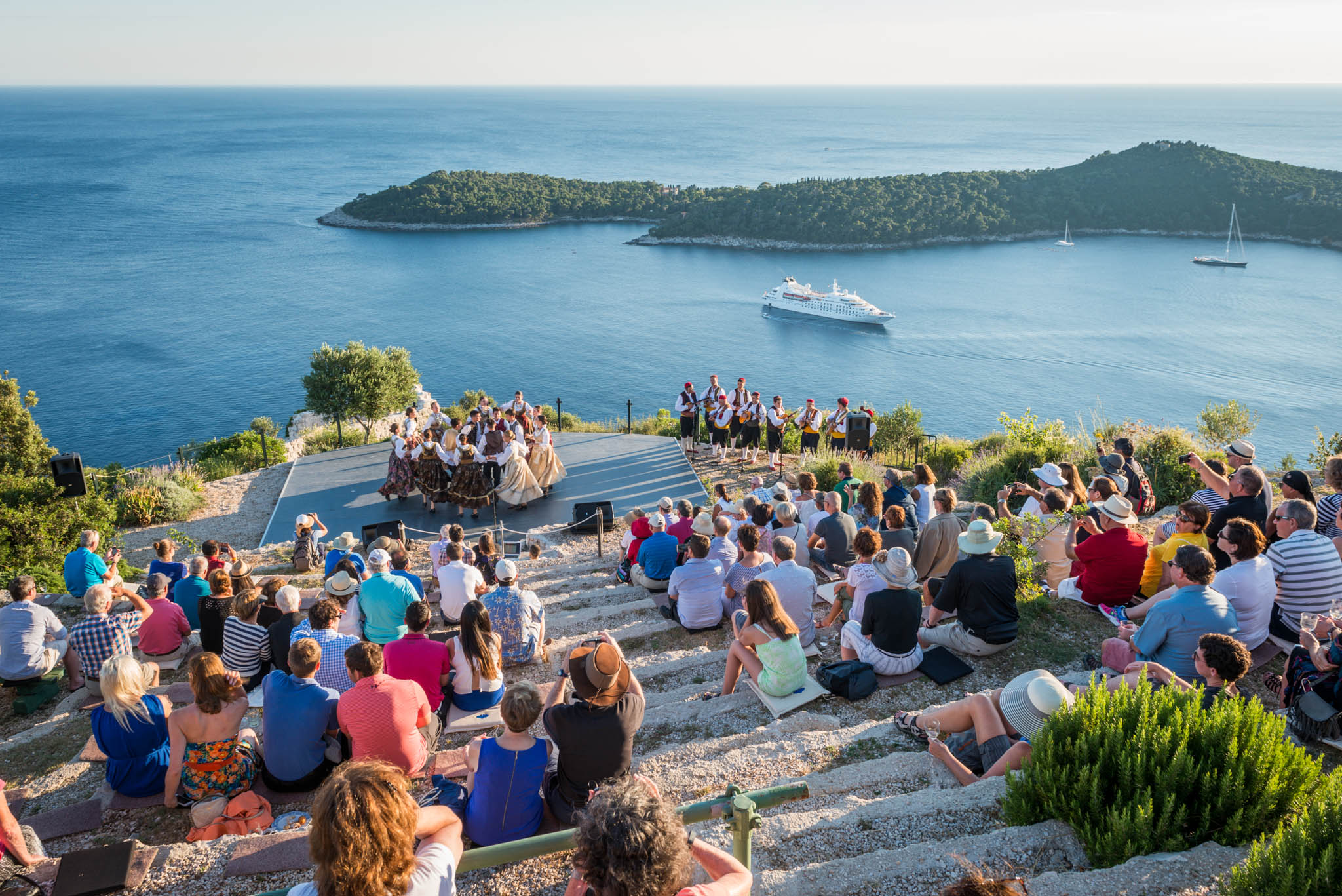 Once all guests have had time to refresh with food and drinks, the cultural program started in the parks’ outside amphitheater, offering same unobstructed views of the turquoise Adriatic. The program included a local klapa, an a capella group, performance and Dubrovnik region’s famous Lindjo dances. Klapa singing has long roots and tradition in this part of Croatia, and is a form of a capella, vocal, singing. The tradition is very much alive today, and klapa singing can be witnessed at festivals, can be heard on the radio and even on the streets of towns along the Croatian coastline. There is no better way to learn about a local culture than through traditional song and dance, so after klapa performance guests also enjoyed the traditional Lindjo troupe performing their vibrant dances in colorful, traditional folklore costumes.