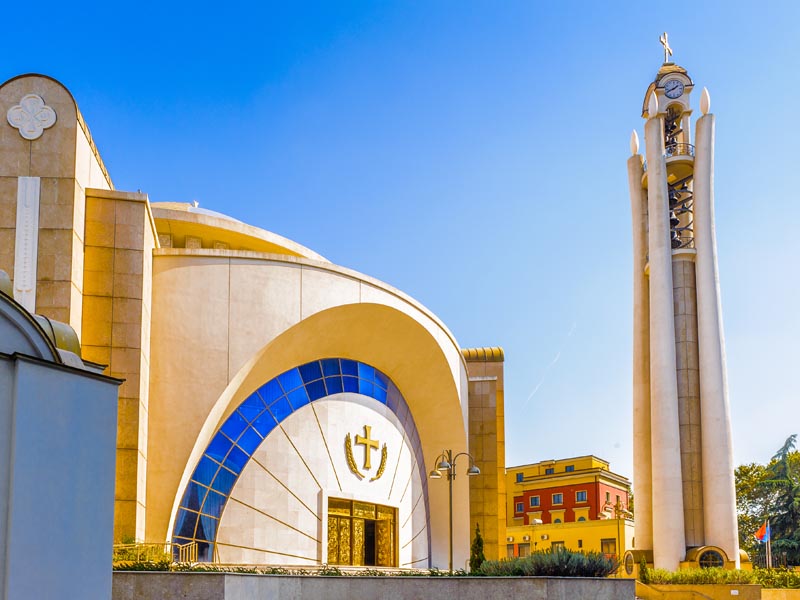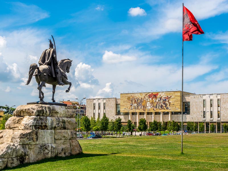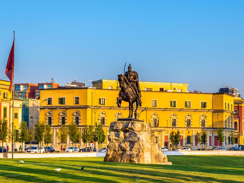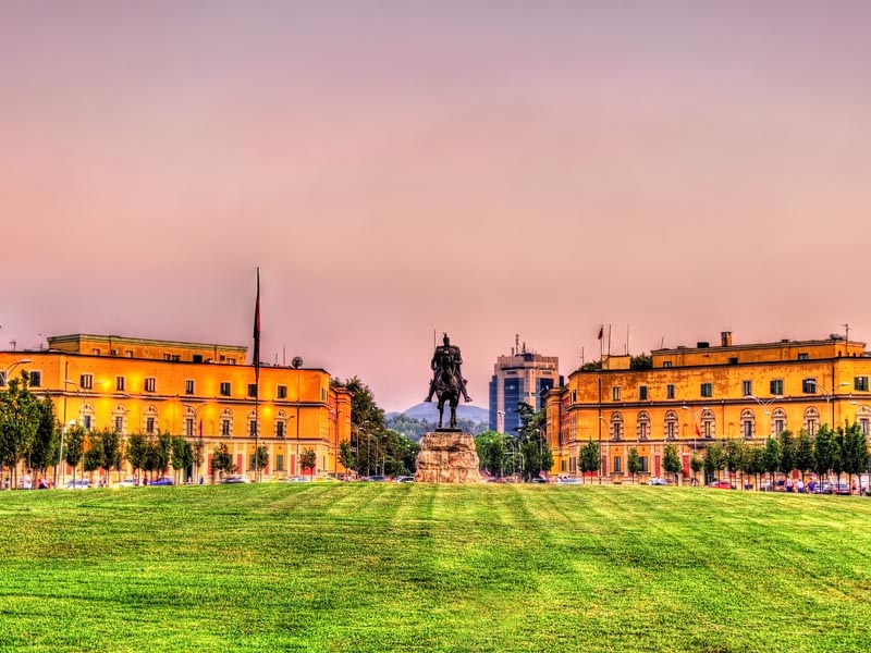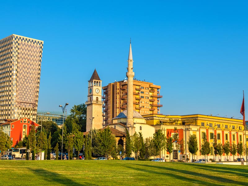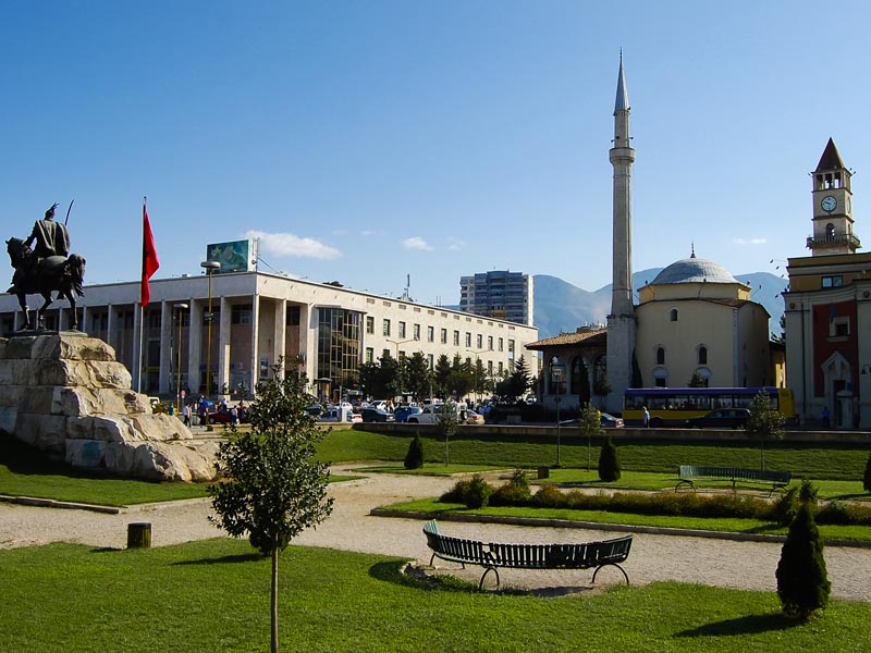 The cultural, economic and political center of Albania, Tirana lies in the middle of the country, half way between the Adriatic Coast and the border with Macedonia. For decades the city was thought of rather drab yet it is rapidly changing and catching up to its European neighbors. In 2000 the city painted the facades of city buildings in bright colors, enhanced public transport and undertook infrastructure improvements. Since, the city has been developing, skyscrapers are rising along new restaurants and shops.