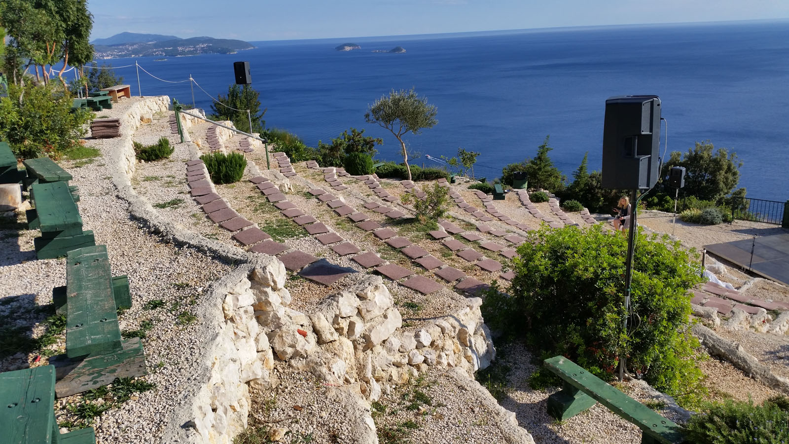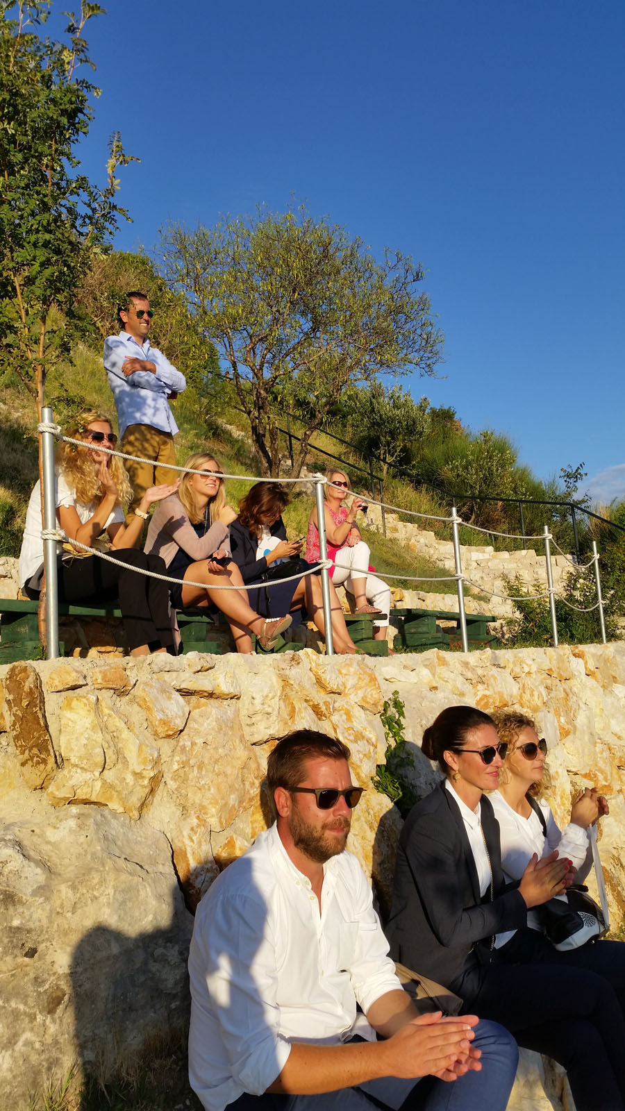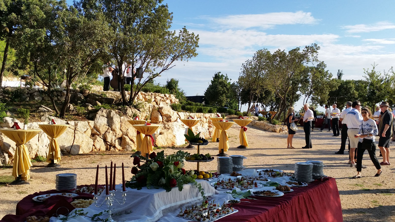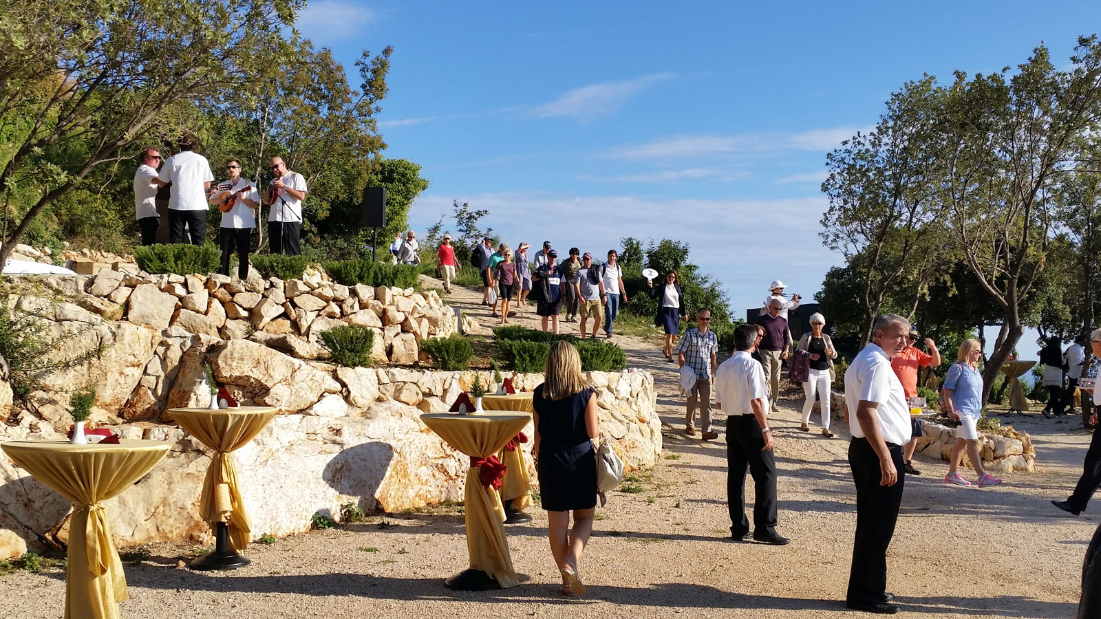 We mingled, enjoyed the amazing panoramas, and were entertained by a local group of singers called "klapa", who sang traditional a capella songs, After the cocktail hour, we set in an open amphitheater and enjoyed an exclusive folklore performance by the Lindo ensemble. The Linđo program included a total of 5 dances from all over the Croatia including: Valpovo, Baranja, Bunjevac, Međimurje and Linđo dances. In addition to dances, Linđo boasted great singing skills with the performances of songs for the audience during the breaks between the dances. They performed a total of 4 songs showing the rich musical and cultural heritage of the region.